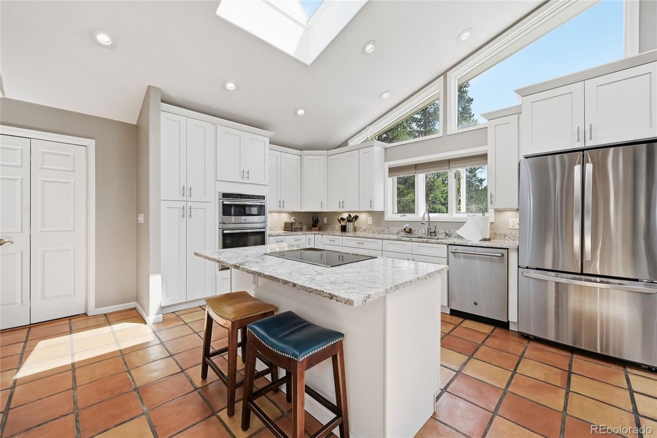 Stunning updated sprawling ranch on over an acre in the private, highly desirable Missouri Lakes community, featuring a private pond for catch-and-release fishing. Light, bright, and open throughout with abundant windows and soaring tongue-and-groove ceilings. Warm radiant heat adds comfort year-round. The beautifully updated kitchen is designed for entertaining and features a large granite island, granite countertops, spacious breakfast bar, oversized walk-in pantry, vaulted ceilings, skylights, and stainless steel appliances. Formal dining room with skylight. Step down into the grand great room with dramatic vaulted ceilings, an inviting fireplace with substantial mantel, and abundant natural light. The spacious primary suite offers vaulted ceilings, private access to the deck, a stunning spa-inspired updated five-piece bath, and a huge walk-in closet. Generous secondary bedrooms also feature vaulted ceilings. Beautifully updated three-quarter bath with custom shower and skylights. Convenient main-floor laundry. Downstairs, enjoy a warm and welcoming family room with fireplace & built-ins, plus an office/study with half bath that could easily serve as a fifth bedroom. Large fourth bedroom with private entrance, private bath, walk-in closet, and laundry area, ideal for multigenerational living or an in-law suite. Outdoor living shines with an updated 20x53 deck perfect for BBQs and enjoying the peaceful setting. Newer shed, extra gravel driveway, and attached three-car garage with storage and workbench area. Wonderful tree-filled lot offering the perfect mountain living lifestyle, with access to the private Missouri Lakes pond for catch-and-release enjoyment. Ideally located just minutes from Black Hawk and Central City, with an easy drive to the Denver metro areas.